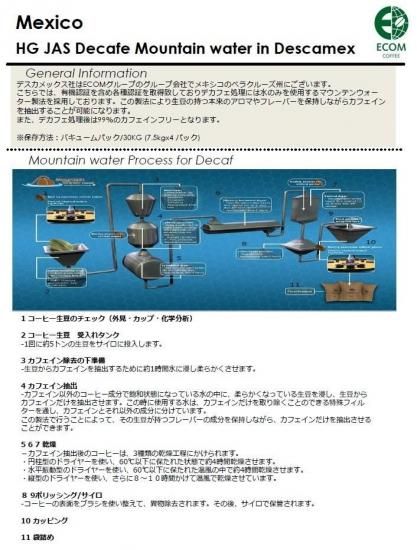 マウンテンウォーター・デカフェ製法は、多くの有機認証を取得しており、科学的な溶媒を一切使用せずに安全にカフェイン除去を行うシステム。