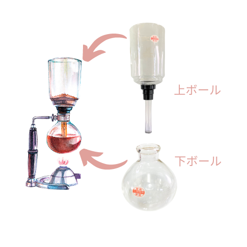 ガラスボール:耐熱ガラス「HARIO Glass®」 フタ:ポリプロピレン フィルター一式:ステンレス ふうぼう:アルミニウム アルコールランプホルダー:ポリプロピレン スタンド:鉄・亜鉛合金・メラミン スタンドネジ:真鍮